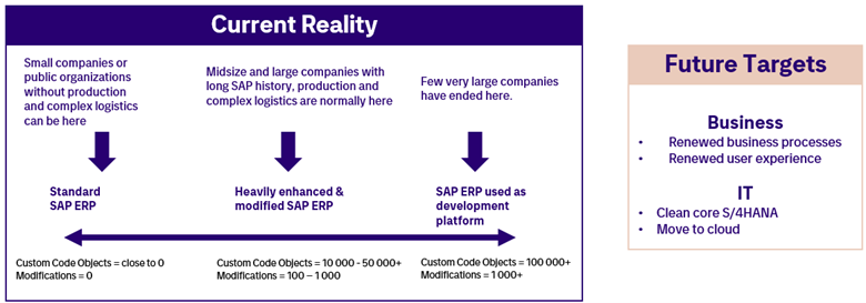 To add fuel to fire, business stakeholders are setting demanding targets to renew business processes, improve user experience, and utilize data, and SAP is promoting Clean core S/4HANA and a move to the cloud (RISE with SAP).